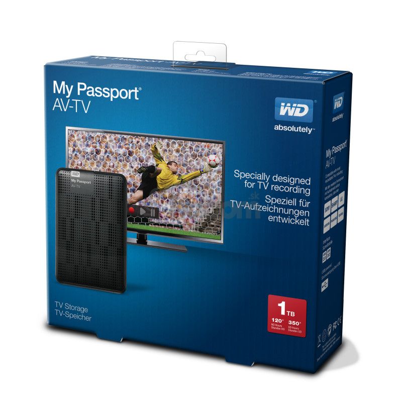 Vaši zákazníci môžu po pripojení zariadenia My Passport AV-TV k televízoru s funkciou nahrávania nahrávať a prehrávať svoje obľúbené programy, filmy, športové podujatia a iné programy vo vysokej kvalite. So špeciálne navrhnutou jednotkou triedy AV, vysokým výkonom a maximálnou kompatibilitou tvorí dokonalú jednotku pre ich televízory s funkciou nahrávania.Dôležité vlastnosti: