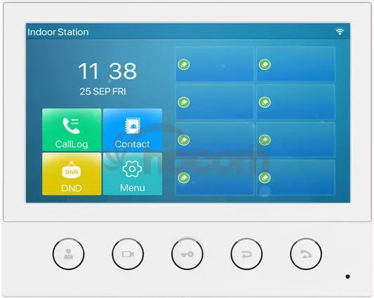 Fanvil i53W je SIP vnútorná stanica so 7palcovým farebným dotykovým displejom s 5 funkčnými tlačidlami, ktoré je možné použiť v rôznych vnútorných scenároch. Pomocou dverného telefónu a interkomu pri vchode dokáže Fanvil i53W ľahko vzdialene ovládať prístup do objektu. Fanvil i53W je flexibilný a výkonný s bohatými rozhraniami na pripojenie väčšieho počtu bezpečnostných zariadení.So zreteľnou dotykovou obrazovkou ponúka Fanvil i53W priamy prístup ku všetkým kľúčovým funkciám na dosah ruky a poskytuje používateľom plynulo a príjemné ovládanie.