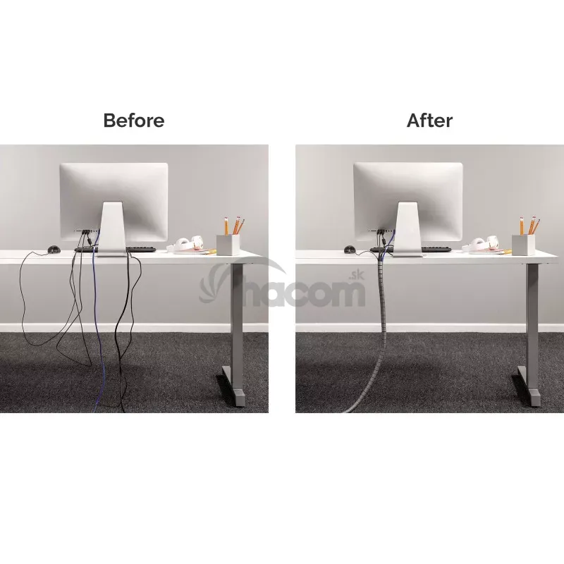 Praktický organizér káblov určený na usporiadanie a ochranu všetkých káblov počítačov, hi-fi zariadení, domácich a kancelárskych prístrojov.Ľahko použiteľný aplikátor umožňuje rýchle vloženie káblov do organizéra.