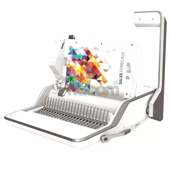 Multifunkčný viazač Lyra™ "3 v 1". Umožňuje viazanie, zošívanie a dierovanie na zakladanie do zakladača v jednom stroji. Elegantný a sofistikovaný dizajn sa hodí k modernému pracovnému prostrediu.VÄZBA