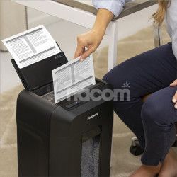 Vstupný model z radu automatických skartovačov značky Fellowes určený pre jedného používateľa ako osobný skartovač v kancelárii. Len nalož, zapni a bež. Automatický skartovací stroj Vám šetrí čas strávený vkladaním skartovaných papierov.Zariadenie je schopné na jeden pracovný cyklus pri automatickom podávaní skartovať až 90 listov 70g papiera v krížovom mikroreze rezu 4×12 mm. Skartovač je tiež vybavený vstupnou štrbinou na ručné podanie až 9 listov papiera. Skartácia z manuálneho podávača je možná súbežne so skartáciou zo zásobníka automatického podávania. Objem odpadového koša 17 litrov. Jednoduchá manipulácia so strojom vďaka pojazdovým kolieskam.