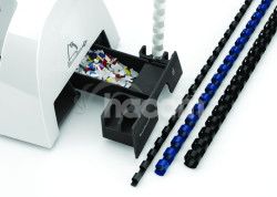 Základný model nového dizajnového radu viazacích strojov Fellowes na príležitostnú väzbu. Dierovacia kapacita až 12 listov 80 g papiera. Kapacita väzby až 120 listov (do priemeru chrbta 16 mm). Viazač má dve prednastavené pozície – na dierovanie formátu A4 a A5.Oddelená dierovacia a viazacia páka na priebežné vkladanie dierovaných listov do plastového chrbta výrazne zefektívňuje prácu. Vďaka dlhšej dierovacej páke je potrebné na dierovanie minimum sily. Stroj je vybavený integrovanou mierkou pre správnu voľbu priemeru chrbta.