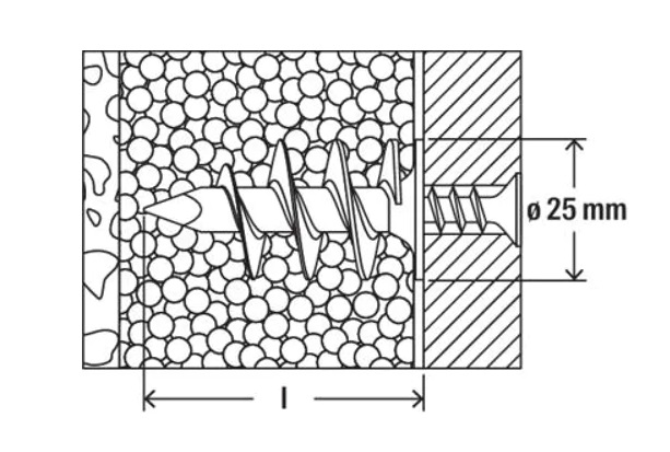 Hmoždinka pre kotvenie do izolačných materiálov, fischer FID je vhodná pre montáž ľahkých komponentov v omietnutých a nelepených izolačných doskách z polystyrénu a polyuretánu. fischer FID je možné aplikovať ručne alebo pomocou akumulátorového skrutkovača. Špeciálny špirálový závit sa zaaplikuje do izolačnej dosky. Komponenty, ako sú poštové schránky, svietidlá alebo detektory pohybu, je možné namontovať pomocou skrutiek 4,5 alebo 6 mm.