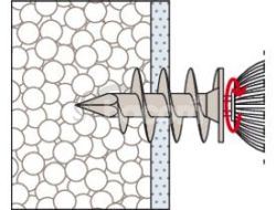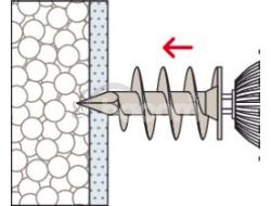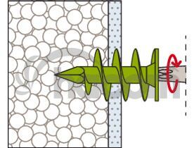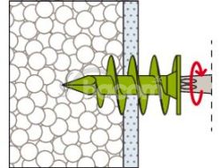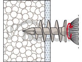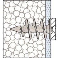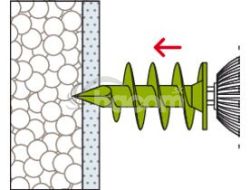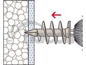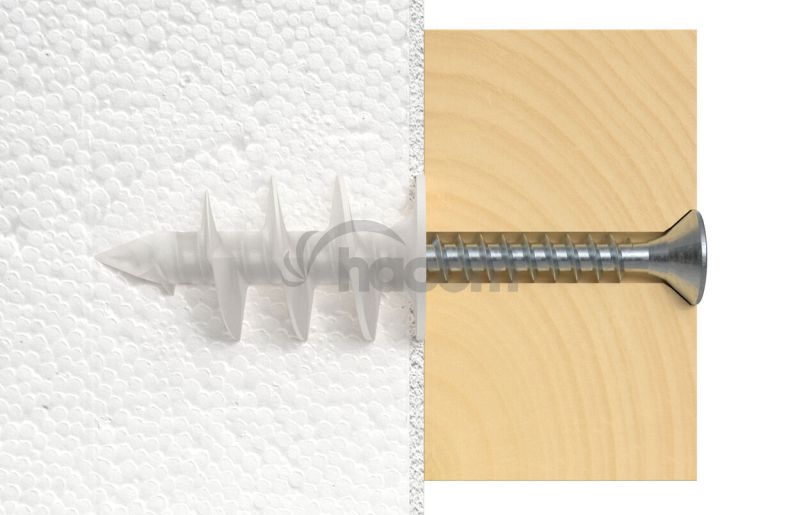 Hmoždinka pre kotvenie do izolačných materiálov, fischer FID je vhodná pre montáž ľahkých komponentov v omietnutých a nelepených izolačných doskách z polystyrénu a polyuretánu. fischer FID je možné aplikovať ručne alebo pomocou akumulátorového skrutkovača. Špeciálny špirálový závit sa zaaplikuje do izolačnej dosky. Komponenty, ako sú poštové schránky, svietidlá alebo detektory pohybu, je možné namontovať pomocou skrutky 6 mm.