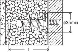 - Osadením hmoždinky len do izolačného materiálu je možné kotvené diely montovať bez tepelných mostov.