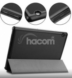 Ochranné púzdro pre tablet s praktickým flipom, ktorý ľahko zložíte a použijete ako stojan. Puzdro je vyrobené z plastového krytu na mieru, do ktorého sa usadí tabliet az flipu v imitácii kože. Vnútri je flipový kryt pokrytý jemným semišom, aby čo najlepšie chránil displej tabletu.V zadnej časti je výrez po fotoaparát, rovnako tak všetky ovládacie prvky tabletu sú pohodlne prístupné.