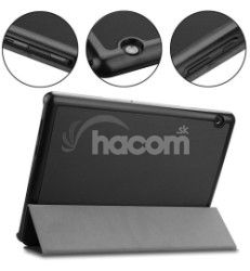 Ochranné púzdro pre tablet s praktickým flipom, ktorý ľahko zložíte a použijete ako stojan. Puzdro je vyrobené z plastového krytu na mieru, do ktorého sa usadí tabliet az flipu v imitácii kože. Vnútri je flipový kryt pokrytý jemným semišom, aby čo najlepšie chránil displej tabletu.V zadnej časti je výrez po fotoaparát, rovnako tak všetky ovládacie prvky tabletu sú pohodlne prístupné.