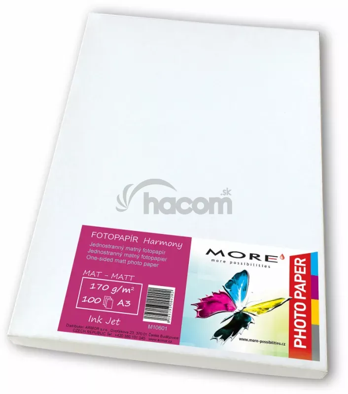- Fotopapier matný biely pre A3; 170g/m2; pre ink. tlač.; 100 ks M10601