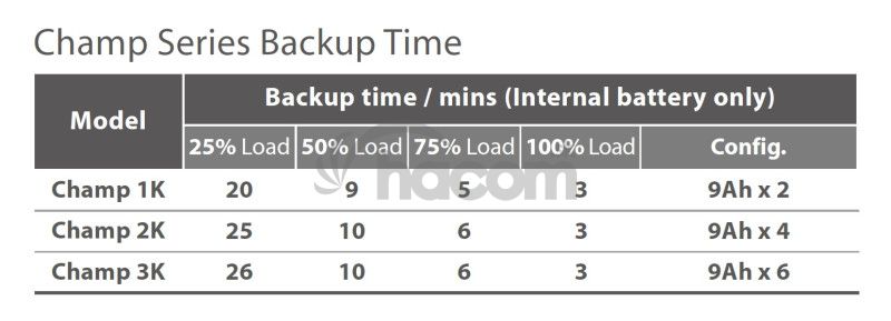 Rad Champ Tower je verzia záložných zdrojov s vysokou hustotou dvojkonverzných online UPS s výkonovým faktorom 0.9. Je navrhnutý v malom rozmere s mikroprocesorovým radičom. Jeho vhodné umiestnenie je vo firmách ako záložný zdroj pre napájanie serverov, s jeho maximálnou hlučnosťou 50dB na 1 meter. Champ majú tiež štandardné porty USB a RS-232 so vstavaným inteligentným slotom pre ďalšie adaptéry, prevodníky protokolov a kartičky kontaktov.Hlavné vlastnosti: