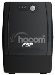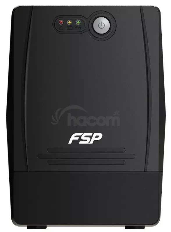 UPS zdroj slúži ako záložná batéria, ktorá udrží počítače, servery a inú IT techniku v chode pri výpadku elektrického prúdu. Prednosti tohto modelu sú predovšetkým jeho kompaktné rozmery, vysoká spoľahlivosť zaručená kvalitným mikroprocesorom, odolnosť voči automatickému vypnutiu, nabíjanie i v off-režime a funkcia studeného štartu.FP séria UPS FSP / Fortron nemá možnosť komunikácie s PC (nie je obsiahnutý USB ani RS-232 komunikačný port). V prípade požiadavky na komunikačný port použite UPS z radu EP série.
