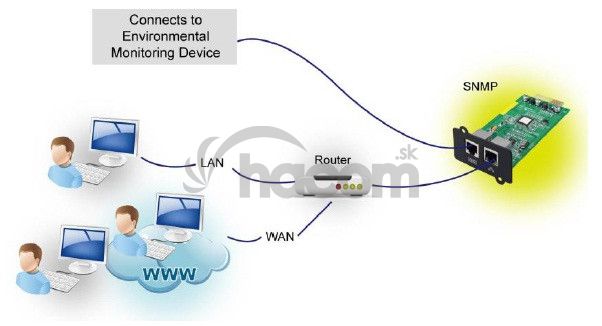 * Umožňuje ovládanie a monitorovanie UPS cez RJ-45 sieťové pripojenie* Real-time dynamické grafy dát UPS (napätie, frekvencia, úroveň záťaže, úroveň batérie)