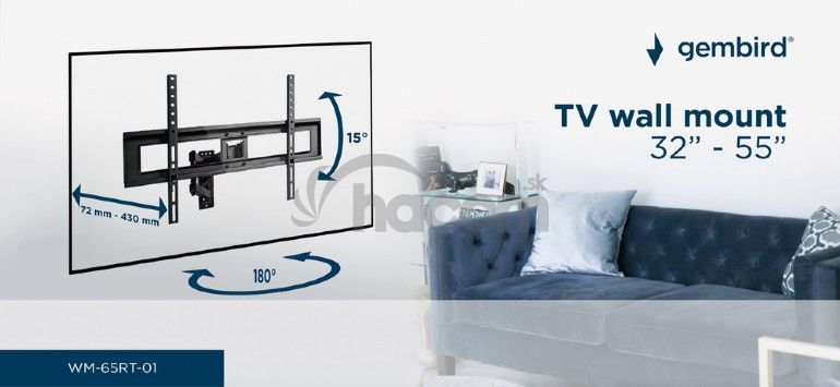 - GEMBIRD držiak TV, nastaviteľný 32-65", 40kg WM-65RT-03