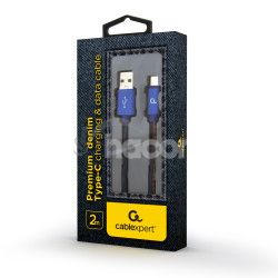 Gembird oplietaný denim USB-A/USB-C kábel 2m CC-USB2J-AMCM-2M-BL