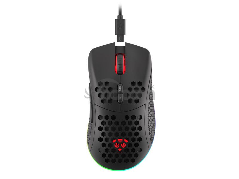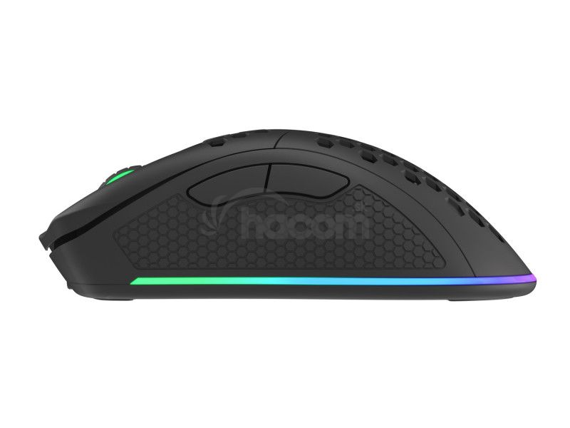 Myš je vybavena efektním osvětlením RGB s efektem PRISMO, které vám umožní nasvítit herní stojan libovolnou barvou a dodat mu jedinečný charakter. Veškerá nastavení podsvícení lze snadno nastavit pomocí speciálního softwaru.