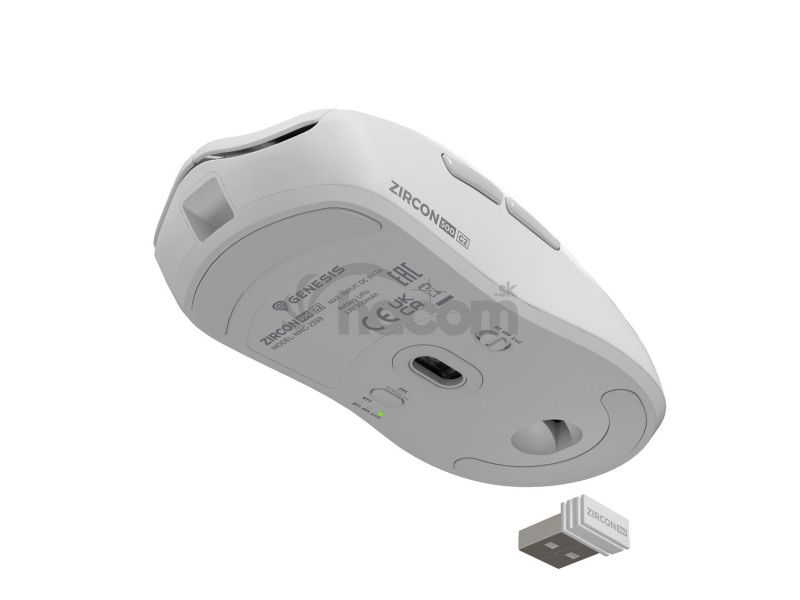 - Genesis herná myš ZIRCON 500/Herná/Optická/10 000DPI/Bezdrôtová USB + Bluetooth/Biela NMG-2114