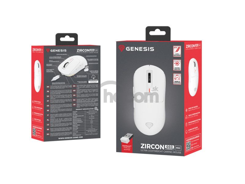 - Genesis herná myš ZIRCON 660 PRO, 26 000DPI, biela NMG-2194