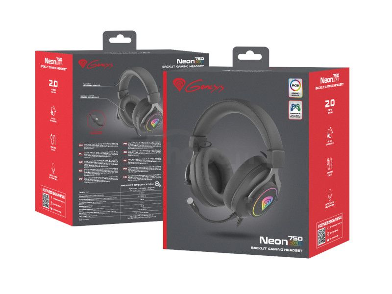 - GENESIS herné slúchadlá s mikrofónom NEON 750, RGB podsvietenie, čierne NSG-1792