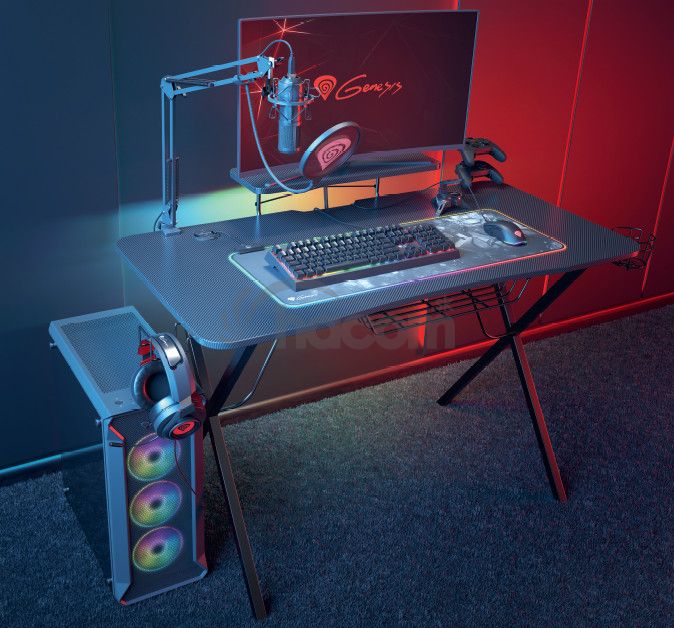 - Genesis Holm 300 RGB - herné stôl s RGB podsvietením, 3xUSB 3.0, bezdrôtová nabíjačka mobilov NDS-1550
