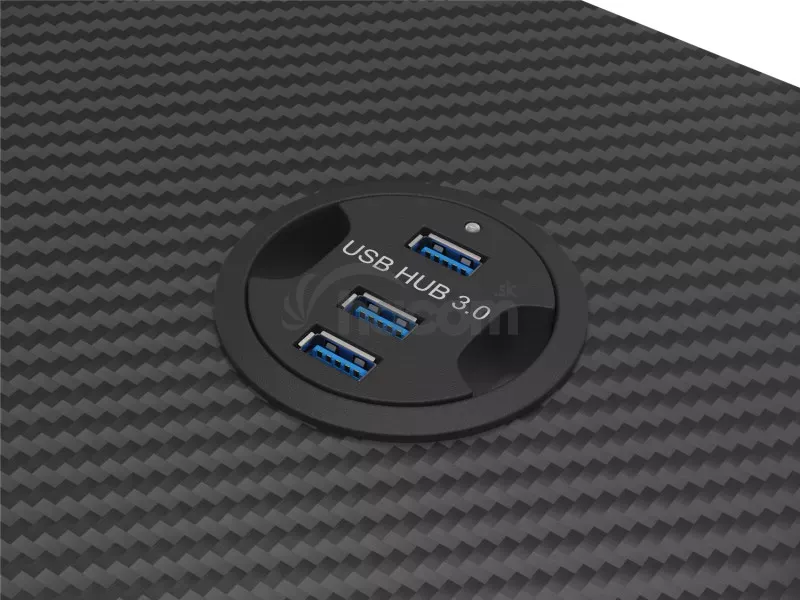 - Vstavaný rozbočovač s tromi portami USB 3.0 a káblovými priechodkami uľahčujúce pripojenie periférnych zariadení a správu všetkých vodičov