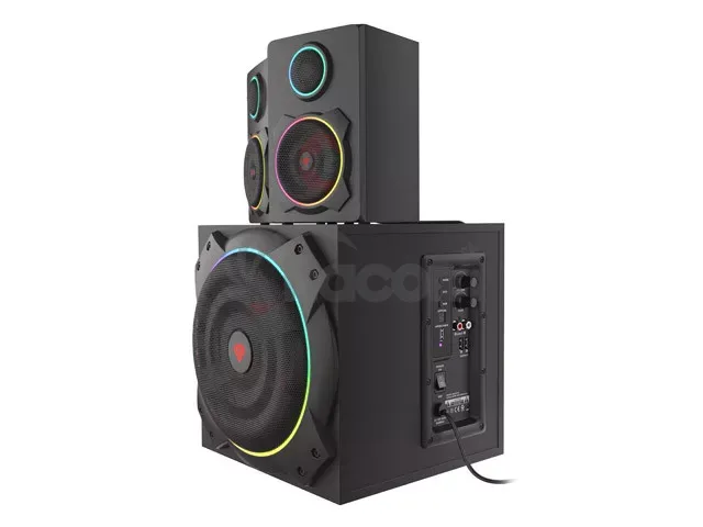 Reproduktory poskytujú skvelý zážitok z počúvania vďaka dodávanému wooferu. Ich hlasitosť a úroveň basov môžete ľahko nastaviť vďaka potenciometrom umiestneným na boku subwoofera. Súprava je vybavená vysokým RMS výkonom až 60 W. Vychutnajte si silný zvuk a basy, ktoré budete počuť aj ucítite.