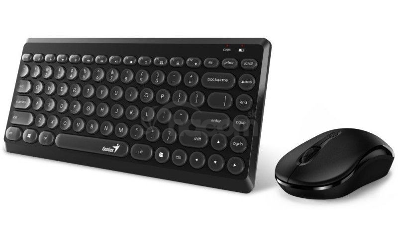 Genius LuxeMate Q8000Kvalitný bezdrôtový set klávesnice a myši pokryje všetky vaše základné kancelárske potreby. Klávesnica v retro prevedení disponuje okrúhlymi nízkoprofilovými klávesmi pre tiché a efektívne písanie. Myš je vybavená optickým senzorom s rozlíšením snímača až 1600 dpi, ktoré zaručia hladké a presné ovládanie.