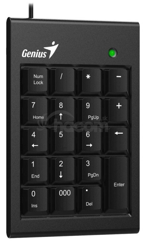 Externá numerická klávesnica v slim prevedení pre rýchle a pohodlné zadávanie číselných údajov do PC či notebooku. Pripojenie k počítaču je realizované cez 1,4 m dlhý kábel zakončený USB konektorom.technické parametre