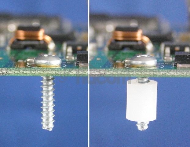 Skrutky na uchytenie elektroniky + plastové stĺpiky. - 4 + 4 ks
