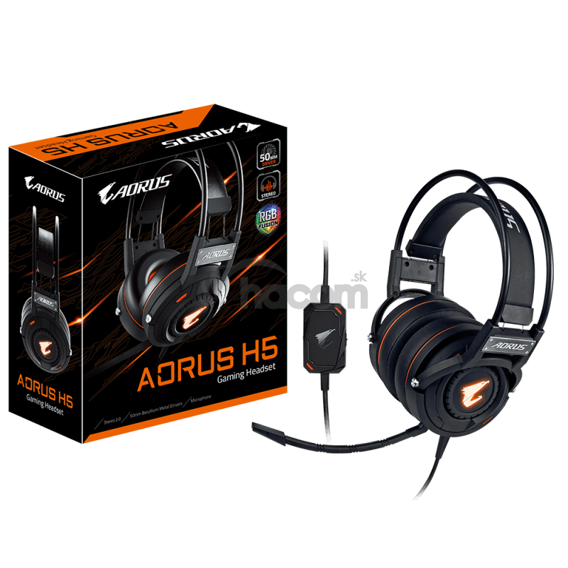 Herný headset Aorus H5, so skvelým pomerom cany a výkonu. Ponúka kvalitný zvuk slúchadiel aj mikrofón s pohodlnými vankúšikmi.* 50mm kovové reproduktory z berýlia