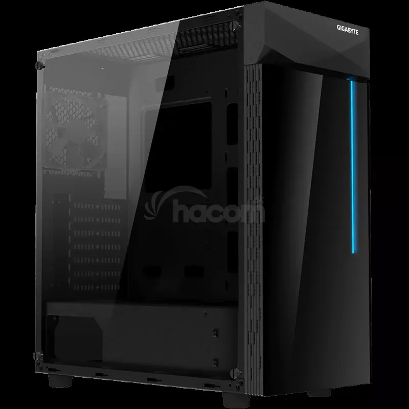 GIGABYTE skriňa Aorus G200 glasss. S čiernym exteriérom a štýlovým dizajnom vetranie prináša C200 GLASS mimoriadne jednoduchý a vynikajúci dizajn. So 7 farbami a množstvom svetelných efektov si môžete vytvoriť svoj vlastný štýl. Stlačením spínača RGB LED môžete ľahko prepínať svetelné efekty.