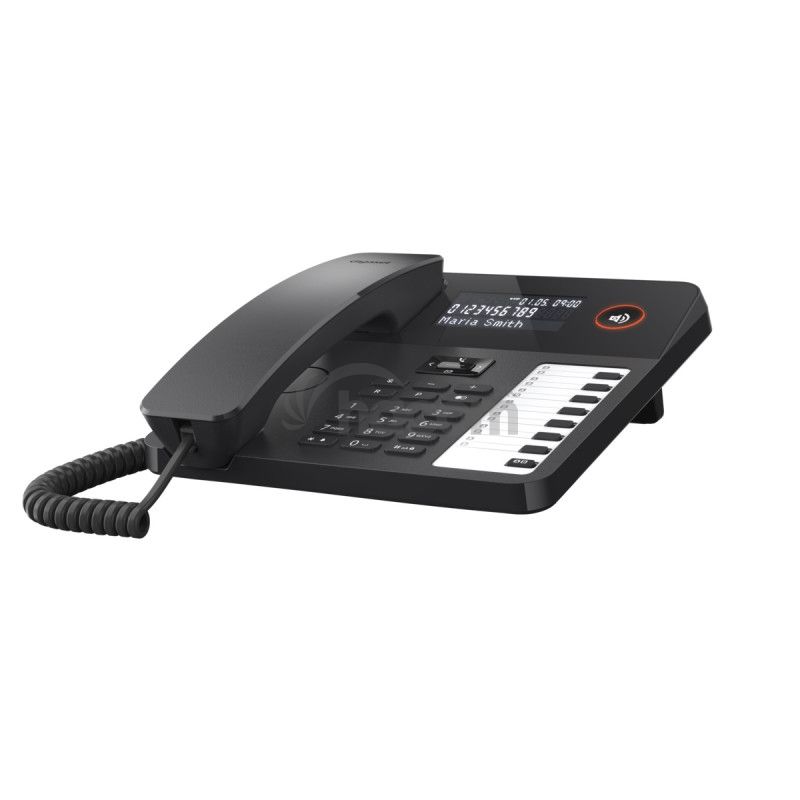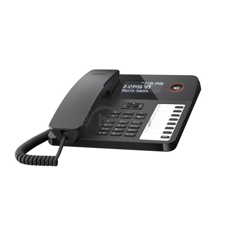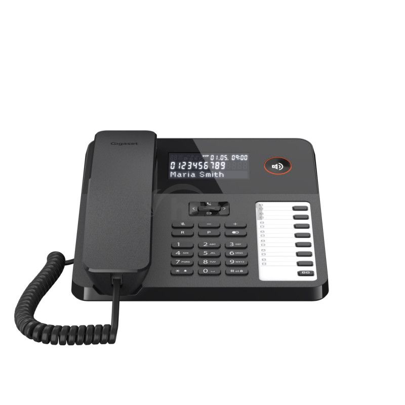 Šnúrový telefón Gigaset DESK 600 s LCD displejom a siedmimi klávesmi priamej voľby, každú s dvoma
