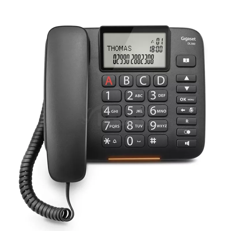 o 4 programovateľné klávesy priamej voľby (A–D) pre dôležité telefónne čísla