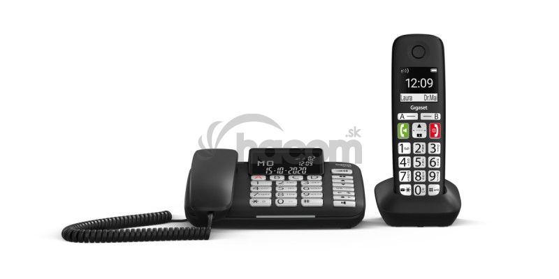 Komfortný kombinovaný telefón s maximálnou slobodou pohybu a prístupnosťou v domácnostiDva perfektne koordinované prístroje fungujú ako kombinovaná sada a zaručujú maximálnu slobodu pohybu pripojením šnúrového telefónu na stálom mieste s flexibilným slúchadlom