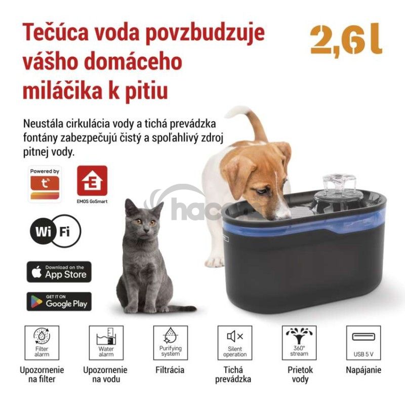 | obsah balenia | fontána, napájací adaptér, prívodný kábel, čerpadlo, filter k čerpadlu, bavlnený filter, čistiaca kefka |