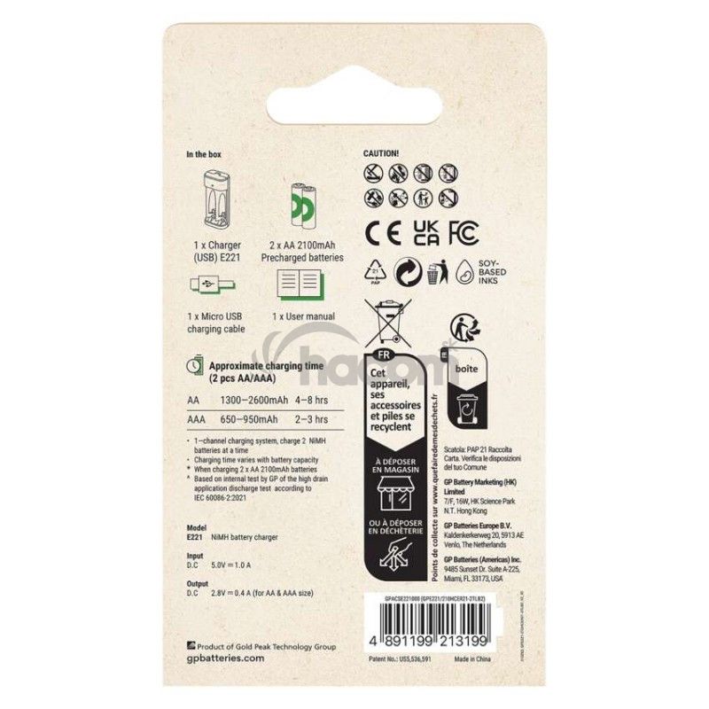GP nabíjačka batérií Eco E221 + 2AA GP ReCyko 2100 B50224