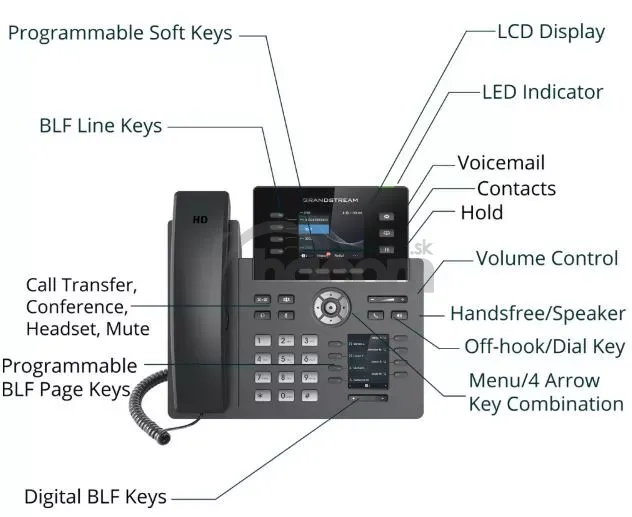 - Grandstream GRP2614, 2.8" TFT bar. disp., 4SIP úč., 8prog. hr., 40virt. BLF hr., BT, dual Gbit GRP2614
