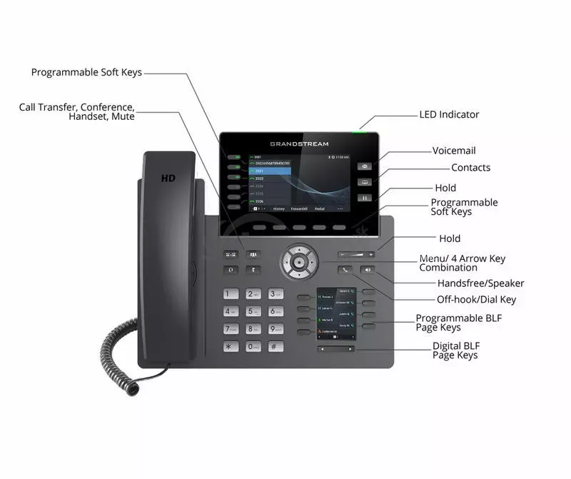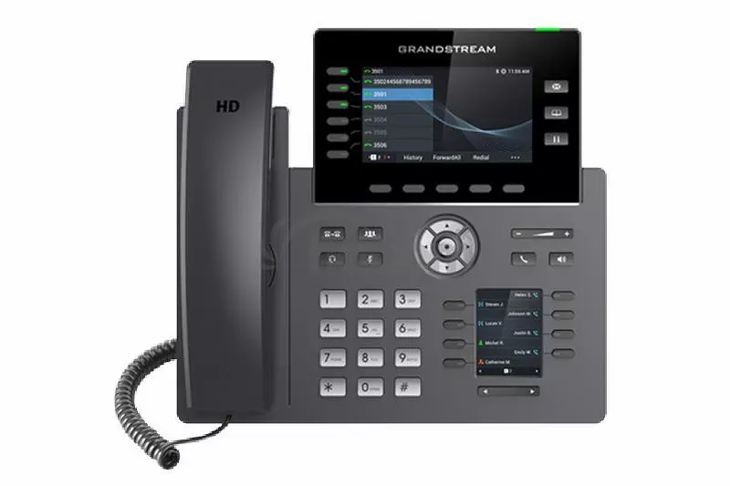 GRP2616 je IP telefón so 6 linkovými tlačidlami z adaptabilného radu telefónov Grandstream, je navrhnutý pre jednoduché hromadné nasadenie a jednoduchú správu pomocou provisioningu. GRP2616 je vyrobený pre potreby zaneprázdnených desktopových pracovníkov a pre ľahké nasadenie v podnikoch, u poskytovateľov služieb a na ďalších veľkoobjemových trhochGRP2616 je prvotriedny IP telefón, podporuje 6 linkových tlačidiel a 6 SIP účtov a ponúka elegantný dizajn a rad funkcií budúcej generácie, vrátane integrovanej Wi-Fi, podpory Bluetooth, 48 viacúčelovými tlačidlami (MPK), dvoma gigabitovými portami a ďalších. Toto zariadenie je vybavené 4,3 palcovým farebným LCD displejom s vymeniteľnými čelnou doskou a ďalším 2,4 palcovým displejom s 8 dvojfarebnými BLF tlačidlami.