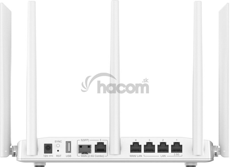 Síťové rozhrania: 1x 2,5G kombinovaný SFP/RJ45 Ethernet WAN, 1x automatická detekcia 10/100/1000 Mbps Ethernet WAN/LAN RJ-45, 1x 2,5G Ethernet LAN RJ-45, 2x 1G Ethernet LAN RJ.