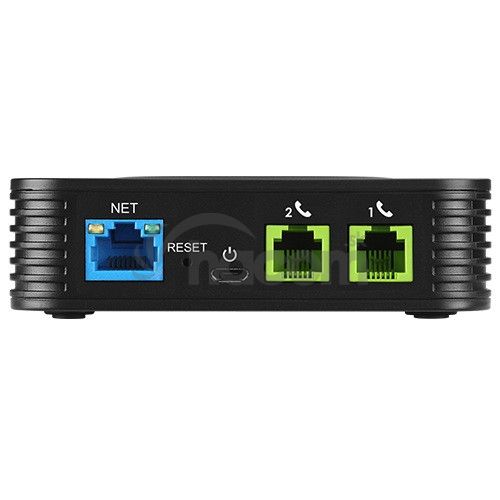 Podporuje 2 SIP profily prostredníctvom 2 FXS portov a jedného 10/100Mbps portu.