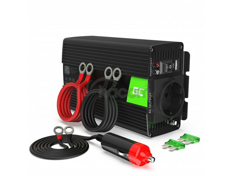 Automobilový menič/invertor Green Cell INV05DE automobilový menič napätia 12V to 230V, 300W je zariadenie, ktoré mení jednosmerné napätie z automobilového akumulátora alebo automobilového zväzu na striedavý prúd ~ 230V. Presne rovnaký signál je v každej elektrickej zástrčke (typ F) v Európe.