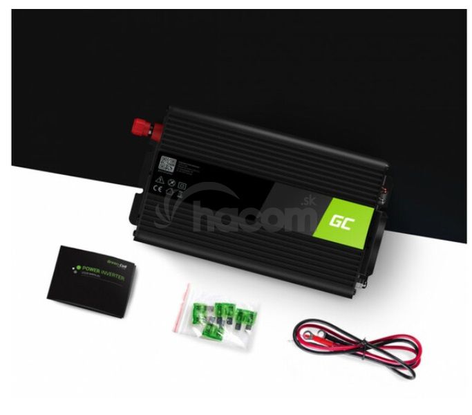 Automobilový menič/invertor Green Cell INV08 Voltage Car Inverter 12V to 220V, 1000W/2000W je zariadenie, ktoré mení jednosmerné napätie z automobilového akumulátora alebo automobilového zväzu na striedavý prúd ~ 230V. Presne rovnaký signál je v každej elektrickej zástrčke (typ F) v Európe.