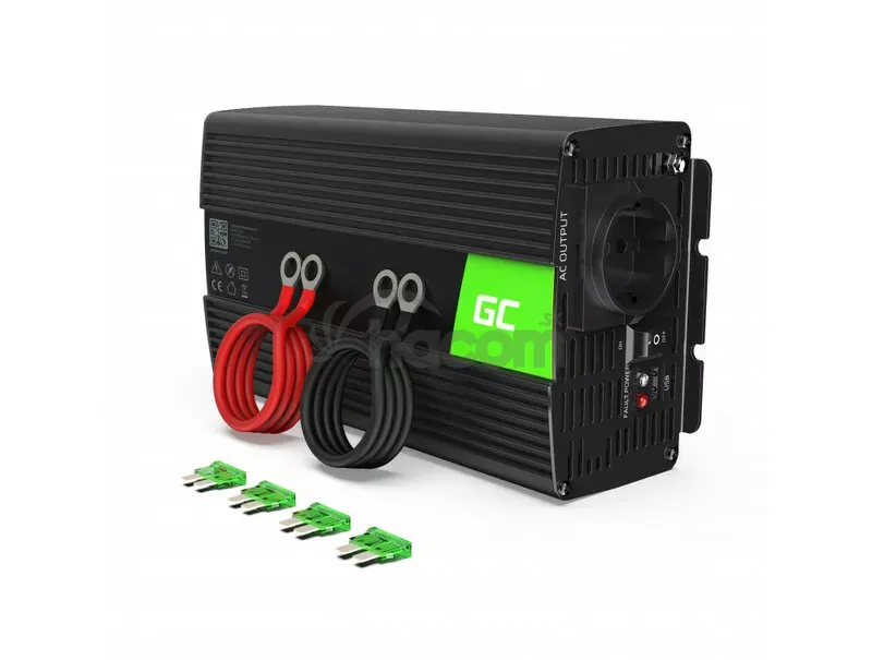 Automobilový menič/invertor napätia Green Cell INV23 automobilový menič napätia 24V to 230V, 1000W je zariadenie, ktoré mení jednosmerné napätie z automobilového akumulátora alebo automobilového zväzu na striedavý prúd ~ 230V. Presne rovnaký signál je v každej elektrickej zástrčke (typ F) v Európe.