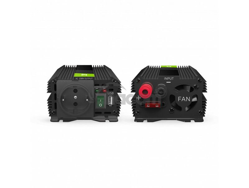 Automobilový menič/invertor napätia Green Cell INVGC01 automobilový menič napätia 12V/230V, 300W/600W je zariadenie, ktoré mení jednosmerný prúd 12V DC z automobilového akumulátora alebo automobilového zväzu na striedavý prúd ~ 230V.