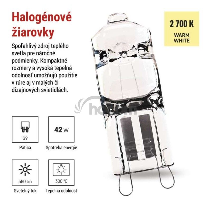 - Halogénová žiarovka JC 42W G9 teplá biela 300 °C ZE0306