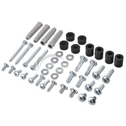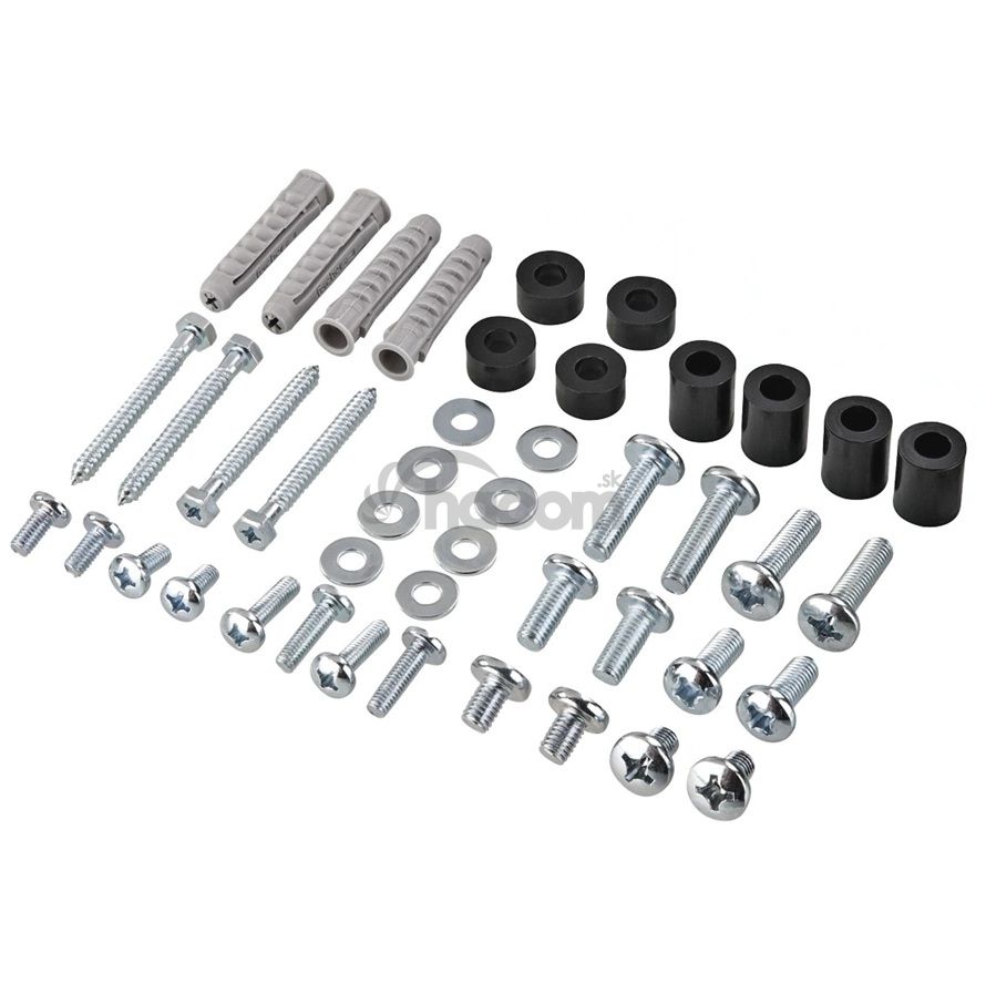 • set skrutiek a značkových hmoždiniek Fischer, vodováha, vŕtacia šablóna, ceruzka, pásky na káble