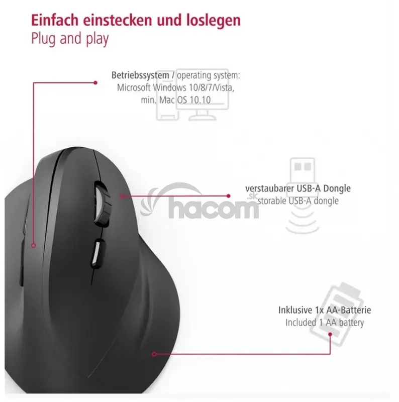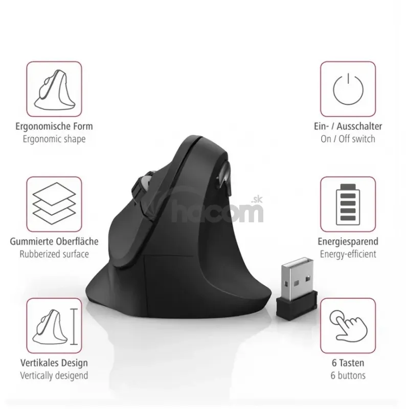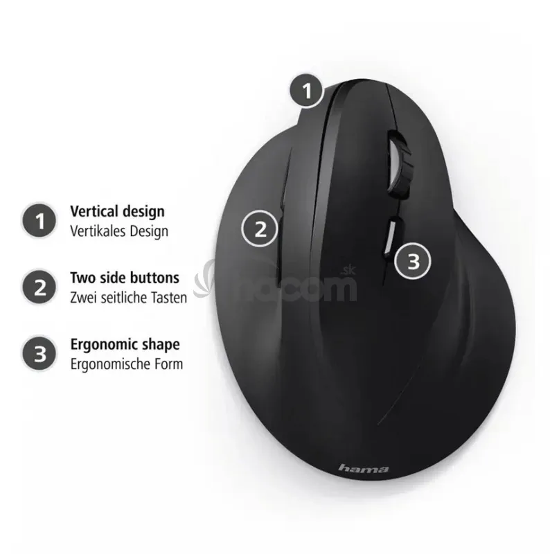 - Hama vertikálna ergonomická bezdrôtová myš EMW-500, pre pravákov, čierna