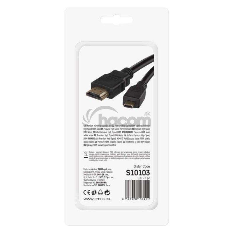 HDMI 2.0 high speed kábel A vidlica – D vidlica 1,5m S10103