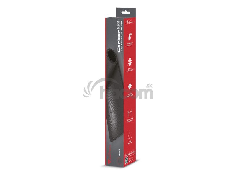 Carbon 500 Ultra Wave je herná podložka pre všetky vaše herné vybavenie. Mimoriadne veľká veľkosť vám umožní správne usporiadať vybavenie a nikdy vám nedôjde miesto pre myš. "Rýchlostný" povrch a gumové podlaha robia podložku dokonalým spoločníkom, ktorý ochráni váš stôl a poskytne vám pevnú kontrolu nad myšou.Veľké ciele potrebujú viac priestoru