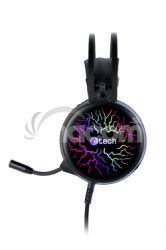 C-TECH ASTRO sú herné slúchadlá s mikrofónom, ktoré ocenia predovšetkým hráči počítačových hier, ale aj milovníci multimédií. Sú navrhnuté tak, aby ich konštrukcia bola čo najľahšia a teda pre užívateľov veľmi pohodlná. 50mm meniče ponúkajú vynikajúci zvuk a naozaj veľké náušníky, ktoré Vaše uši úplne zakryjú, celkovú kvalitu zvuku ešte viac umocňujú. Ponúkajú obrovský užívateľský komfort a vynikajúcu reprodukciu zvuku za každých okolností. Uzavretá konštrukcia slúchadiel dokonale izoluje od okolitého rušenia. Slúchadlá majú LED podsvietenie 7 farbami, ktoré sa cyklicky obmieňajú. Ovládanie hlasitosti, ktoré sa nachádza vzadu priamo na mušli slúchadiel, je veľmi praktické. Odpadá tak starosť o to nahmatať na dlhom kábli ovládanie hlasitosti, takto vždy s jistototou okamžite ovládania hlasitosti nájdete.ŠPECIFIKÁCIA