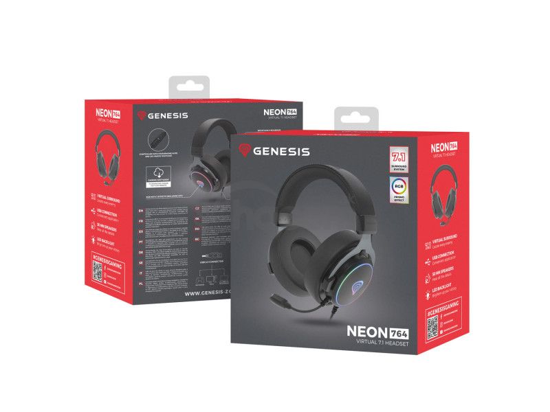 Herné slúchadlá s mikrofónom Genesis NEON 764/7.1/ANC/USB/Drôt/Stand/Čierna NSG-2169
