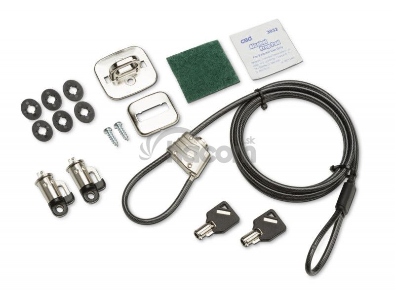 * Jednoducho pretiahnite kábel otvorom pre zámok v počítači a monitorom, pripevnite ho k stolu alebo inému ukotvenému povrchu a zamknite ho svojim kľúčom.* Sada bezpečnostného zámku pre počítač HP Business v3 pomôže ochrániť skriňu počítača a monitor pred neoprávneným prístupom či odcudzením ako na pracovisku, tak na verejných miestach.